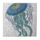 Blue Jellyfish 1 von Fab Funky. Ein schöner blauer, schwebender Quallen mit einer Buchseite für einen Hintergrund.|191847D