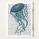 Blue Jellyfish 1 von Fab Funky. Ein schöner blauer, schwebender Quallen mit einer Buchseite für einen Hintergrund.|191847D