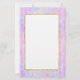 Papier mit abstraktem Hintergrund. Rosa lila und blaue Aquarellfarben bilden dieses künstlerische Design, das vertikale rechteckige Formen auf einem weichen, motlisierten Hintergrund aufweist. Ein Rechteck, das oben mit einem Imitat mit einer goldenen Folienabdeckung überlagert ist, damit Sie drinnen schreiben können.
