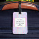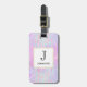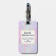 Gepäckanhänger mit abstraktem Hintergrund. Rosa lila und blaue Aquarellfarben bilden dieses künstlerische Design, das vertikale rechteckige Formen auf einem weichen, motlisierten Hintergrund aufweist. Ein quadratisches Oberteil mit einem goldenen Rahmen in Imitaten, der personalisierte Text im Inneren.