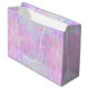 Geschenktasche mit abstraktem Hintergrund. Rosa lila und blaue Aquarellfarben bilden dieses künstlerische Design, das vertikale rechteckige Formen auf einem weichen, motlisierten Hintergrund aufweist.