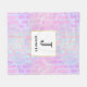 Blanket mit einem abstrakten Hintergrundmuster. Rosa lila und blaue Aquarellfarben bilden dieses künstlerische Design, das vertikale rechteckige Formen auf einem weichen, motlisierten Hintergrund aufweist. Ein quadratisches Oberteil mit einem goldenen Rahmen in Imitaten, der personalisierte Text im Inneren.
