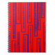 Einfache geometrische Gestaltung, vertikale blaue Rechtecke auf rotem Hintergrund