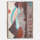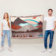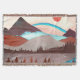 Berglandschaft in Rot und Blues mit einem See und einem kühnen blauen Regenbogen.