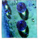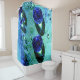 Wassertropfen auf einem Blatt nach Regen entfremdeten sich in einer blauen Farbe. Eine Makronaturfotografie von Katho Menden. Dieser Duschvorhang ist eine Geschenkidee für Naturliebhaber. http://www.zazzle.com/kathom_photo