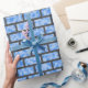 Dieses nerdy PackpapierAusrüstungsbeschreibungen ein Ziegelstein Ähnliches Muster mit einem Blick erinnernd von dem der Retro 8-Bitcomputerspiele. Er kennzeichnet verschiedene Schatten des Blaus.