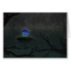 Ein dunkler, noch immer von grünen Bäumen umgebener Teich. Auf einem Felsen mitten im Wasser, ein Single, leuchtende, blaue Rose. Eine 3D-Szene in Vue.