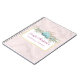 Ein personalisiertes Hochzeitsplanerheft, entworfen mit einem Foto von blauen Rose, umgeben von Blätter und extravaganten Bauern. Die Bausteine bilden auch eine Kronform. Weiße Blume, hübsche blaue Bögen und ein weißes, lackiertes Band umgeben die Rose. Set auf einem staubigen rosa Marmorboden.