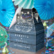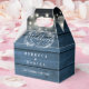 Une élégante boîte rustique de mariage avec des lumières à cordes et des feuilles de feuillage dessinées à la main sur des panneaux de bois bleu vintage. Vous pouvez personnaliser avec votre propre message de remerciement au contraire. Une façon parfaite de remercier vos invités ! Conçu par Thisisnotme©