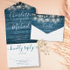 Alles in einer Hochzeitseinladung mit hübschen Saitenlichtern, prächtigen Stilnamen und schicker Typografie auf blauem rustikalem Holzhintergrund. Die Einladung enthält eine perforierte RSVP-Karte, die für Sie individuell adressiert oder links als leere Karte für die Handschrift der Adressdaten Ihres Gastes verwendet werden kann. Entwickelt von Thisisnotme©