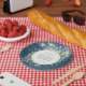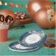 Mit hübschen Saitenlichtern und zarten Aquarellfarben-Blätter auf rustikalem blauen Holzboden können diese schicken botanischen Paare ihre Papierfresser-Teller mit Ihren Monogramm-Initialen und speziellen Duschdetails personalisiert werden. Von Thisisnotme entworfen