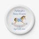 Blauer Schwingpferdebaby-Duschen-Papier-Teller. Dieser entzückende personalisierte Teller macht Ihrem Babyduschen-Party die perfekte Touch. Karo heraus unsere volle Linie der Rockin Schwingpferdebaby-Duschengeschenke und -guter Sachen in unserem Speicher, La Bebba entwirft!