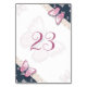 Blütenkarte mit blühenden und rosa Schmetterlingen Tischnummer