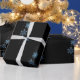 Blaue Schneeflocken auf schwarz Geschenkpapier