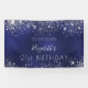 Für eine mädchenhafte und glamouröse 21. Geburtstagsfeier (oder jedes Alter). Ein marineblau Hintergrund mit eleganten Imitaten silberner Staub. Die blaue Farbe ist ungleichmäßig. Personalisieren und fügen Sie einen Namen, Datum und Alter 21. Weiße Buchstaben. Der Name wird mit einem modernen handgeschriebenen Stilskript mit Swashes geschrieben. Um die Swashes behalten, löschen Sie nur den Beispielnamen, verlass die Leerzeichen oder Emoji's vor und nach dem Namen.