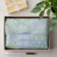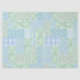 Ein Blatt des hübschen Seidenpapiers, mit eines Land-ähnlichen Imitat-Patchworks der verschiedenen hübschen Blumen- und koordinierenpolka-Punkt-, Striped und kariertenmuster des Singrüns in hellblauem, in Grünem und Weiß. Der Teil der vornehmen und Painterly "Singrün-Flecken" Sammlung, dieses Muster kann leicht justiert werden, um jedes mögliches Seidenpapier zu passen.