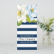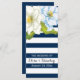 Dunkelblaue Streifen Blume Moderne Blumenzeremonie und Party-Programm mit eleganten weißen und zwei farbenblauen Blumen mit grünen Blätter auf einem gestreiften Muster aus marineblauen und weißen Streifen. Dieses stilvolle zeitgenössische Hochzeitsschema ist vollständig anpassbar und eignet sich hervorragend für eine Hochzeit im Frühjahr oder Sommer.