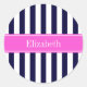 Blaue Streifen, Hot-Pink-Name Monogramm Runder Aufkleber