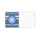 Ein modernes Design mit blauen Streifen, die durch einen Kreis mit einem ersten betont werden. Fügen Sie Ihr Monogramm hinzu. Passen Sie Ihre Wünsche an.