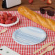 Unregelmäßige horizontale Streifen in verschiedenen hellblauen Tönen