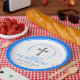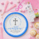 Feiern Sie Baby-/Kindertaufen, Namensfeiern oder Taufen für Erwachsene mit diesem einfachen, aber stilvollen Design, das ein rosa und graues Farbschema mit elegantem Set auf weißem Hintergrund aufweist. Design © W.H. Sim. Weitere Informationen unter zazzle.com/expressionsoccasions