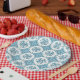 Die geometrisch vielseitig gestalteten Motive sind in marokkanisch-mediterran-blauen Fliesen auf weißem Hintergrund gehalten.