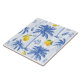 Blaue Toile-Palmen-Limonen-Muster Keramikfliese. Bringen Sie einen Hauch von tropischem Küstencharme in Ihre Heimdekoration mit diesem Design, das einen hellblauen gestreiften Hintergrund mit skizzierten blauen Palmen und lebendigen gelben Limonen zeigt. Fügen Sie Ihrem Wohnraum mit diesem einzigartigen, originellen Design eine ausgeklügelte Eleganz hinzu. Verwenden Sie einen Fliesenuntersetzer oder erstellen Sie eine wirklich einzigartige Fliesenrückwand mit mehreren Fliesen.