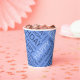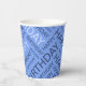 GEBURTSTAG PARTY. Dieses moderne typografische Design in Blautönen verwendet die Worte "HAPPY BIRTHDAY", um ein cooles Muster zu machen. Sie können den Becher mit einem Namen in passender hellblauer Schrift personalisieren.