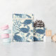 Diese inspirierte Geschenkpackung an der Küste weist ein Muster von Meeresschildkröten und Korallen in Blau- und Cremefarben auf.