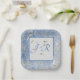 Das Design zeichnet sich durch einen eleganten blau-grauen "Marmoreffekt" aus, der als Hintergrund für die Form dient und mit einem Monogramm Braut und Bräutigam in einem silbergrauen Buchstaben elegant dargestellt ist. Das Aussehen von zarten Bändern und geworfenem Reis überlagert das Design. Entworfen, um die Hochzeitssuite "Blue and Gray Marble" zu begleiten.