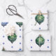 Blaue und grüne Weihnachtsschmuck auf Weiß Geschenkpapier Set