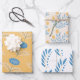Blaue und orangefarbene Blumenumhüllungsblätter Geschenkpapier Set