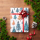Blaue und orangefarbene Weihnachtsbaumen Geschenkpapier