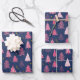 Blaue und rosa Weihnachtsbaummuster Geschenkpapier Set