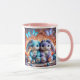 Blaue und violette Plüschkaninchen mit Herzen. Tasse