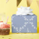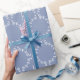 Schick und modern. Dieses denkwürdige, französisch geprägte Verpackungspapier weist ein Wiederholmuster auf, das ein schönes Set zeitgenössischer Schriftart in einem weißen, blumengeschmückten Rahmen vor einem staubblauen Hintergrund enthält.