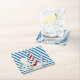 Set PapierUntersetzer mit blauem und weißem Streifenentwurf mit dem Seethema, das einen roten und weißen Leuchtturm, Krake im Seemannhut und Silberanker kennzeichnet.