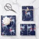 Blaue und weiße Rentierwackelblätter Geschenkpapier Set