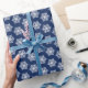 Elegantes Winterurlaub-Verpackungspapier mit marineblau-weißem Schneeflockenmuster für Weihnachtsgeschenkpackungen.