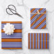 Blaue und weiße Streifen mit verbrannter Orange Geschenkpapier Set