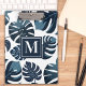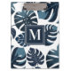 Blaue und weiße tropische Monstera Leaf Klemmbrett