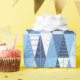 Blaue und weiße Weihnachtsbaumen Geschenkpapier
