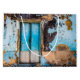Während ich durch die Straßen der kleinen Dörfer der Kapverdischen Inseln spaziere, got ich überwältigt von der unglaublichen Mischung aus Farben, Texturen und Materialien, die wunderschöne Möglichkeiten für städtische Fotografien bietet. Auf diesem Bild: blaue, beige und braune Wand und blaue Tür.