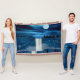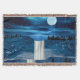 Abstrakte Landschaft von einem Wasserfall mit einem Kaskadengefälle mit einem Mond, Vögeln, Nachthimmel und Sternen.
