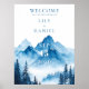Dieses elegante, blaue Hochzeitszeichen der Gebirgswelt kann mit Ihren Informationen in schicker Typografie personalisiert werden. Entwickelt von Thisisnotme©