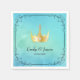 Modernes und elegantes blaues Aquarell und goldene Krone mit Diamanten. Schwarzer Blumenrahmen. Optionales Monogramm