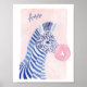 Blaue Wasserfarbe Zebra Tierblasen Kaublase Poster