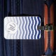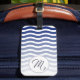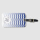Stilvolle Gepäckmarke mit blau gewelltem Muster und elegantem Initial.