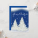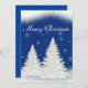 Blaue Weihnachtskarte mit weißem Baum. Einladung