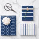 Blaue weiße dünne Streifen Anfangsmonogramm Geschenkpapier Set